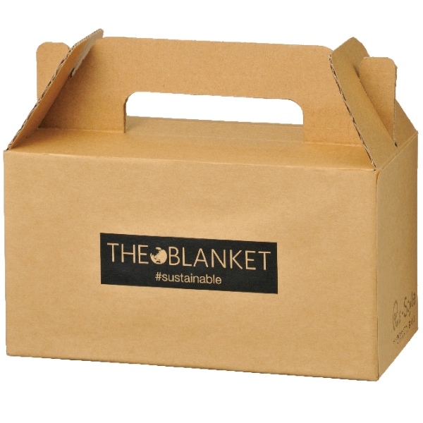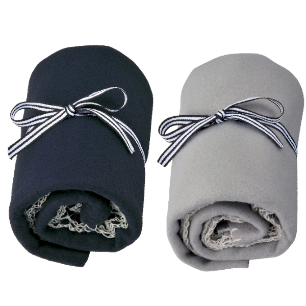 リサイクル素材を使用した環境に優しい定番カラーのブランケット。