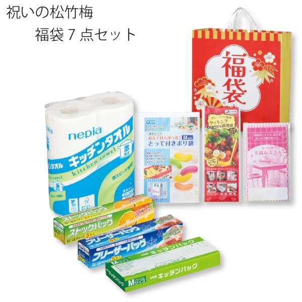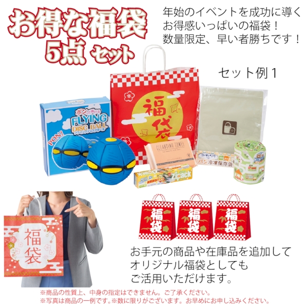縁起の良いモチーフが袋にてんこ盛り!日用品の福袋です。