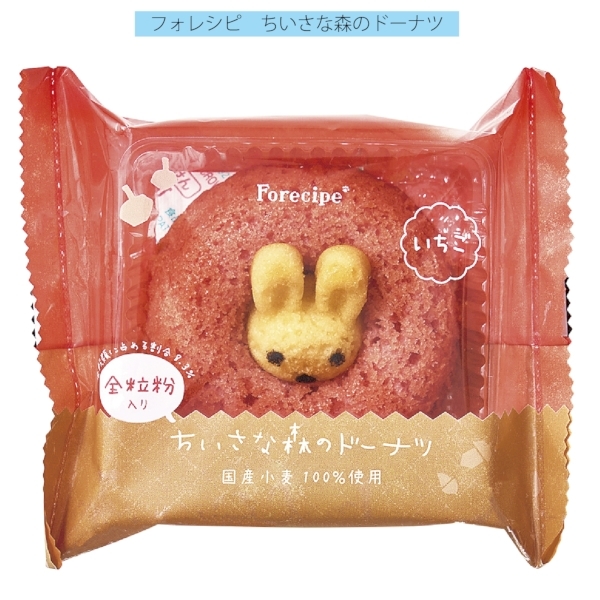 小麦粉とバターの豊かな風味。くまさんとうさぎさんがドーナツの穴からひょっこり顔を出しています。 以下の各種スイーツ各フレーバーごとに5個単位で取混ぜ出荷可能です。 1) ホシフルーツ 果実のミニョン・ド・クグロフ 2) おひるねにゃんこはバタークッキーの香り 3) フォレシピ ちいさな森のドーナツ 4) メッセージ&カフェタイム プチギフト
