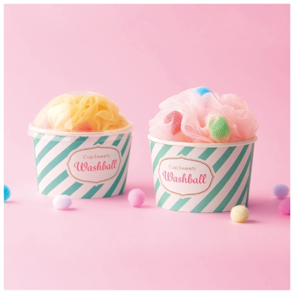 まるでふわふわのかき氷!さわやかなストライプのカップにカラフルなウォッシュボールをINしました。