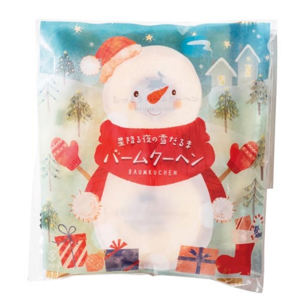 見た目も味も楽しんでいただけるスノーマンのパッケージに入ったしっとりとしたバームクーヘンです。