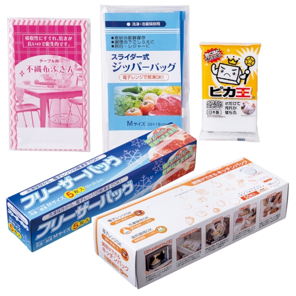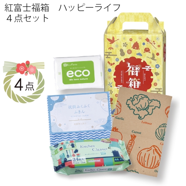 縁起の良い柄の袋に入ったキッチン日用品の福袋です。