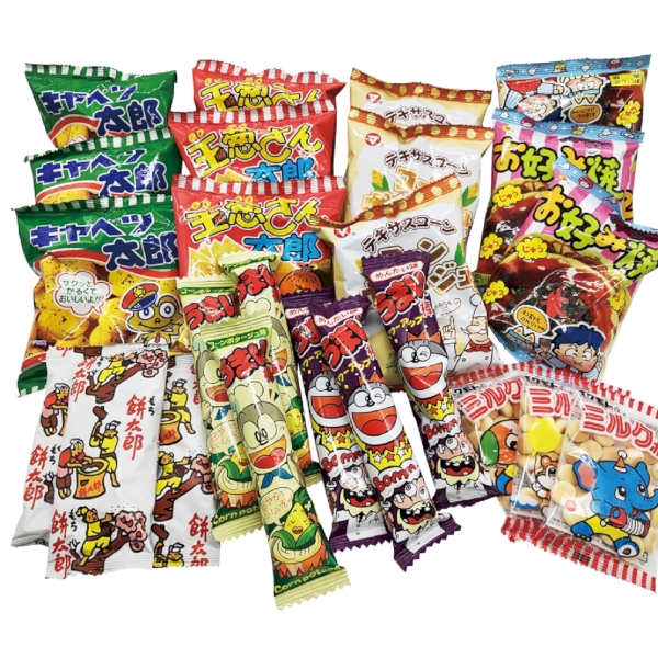 「懐かしの駄菓子屋さんを始めませんか?」貰って嬉しい駄菓子の詰め合わせ!お店で駄菓子屋さんのようにお菓子を並べてお客様にお渡しできるようにした、まとまった数量のお菓子をセットにしたキットです。