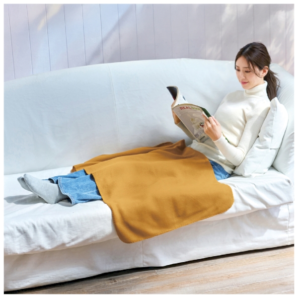 ゴールドのリボンでラッピングしたかのようなパッケージがポイント。使いやすいフリースブランケットです。