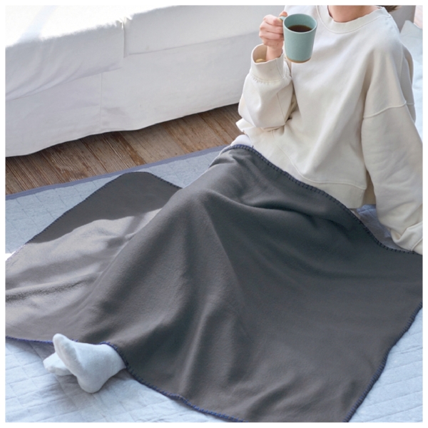 ゴールドリボンでラッピングしたかのようなパッケージがポイント。ちょっと大きめのフリースブランケット。