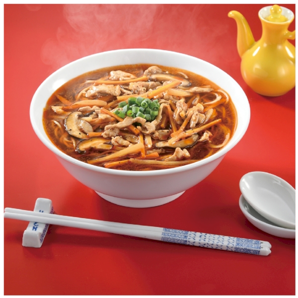 酸辣湯麺(スーラータンメン)は、酢や黒酢の酸味と胡椒やラー油の辛味が特徴的な中華スープである「酸辣湯」に麺を加えた日本式中華料理です。キノコや豚肉、ネギなどを加えてお召し上がりください。