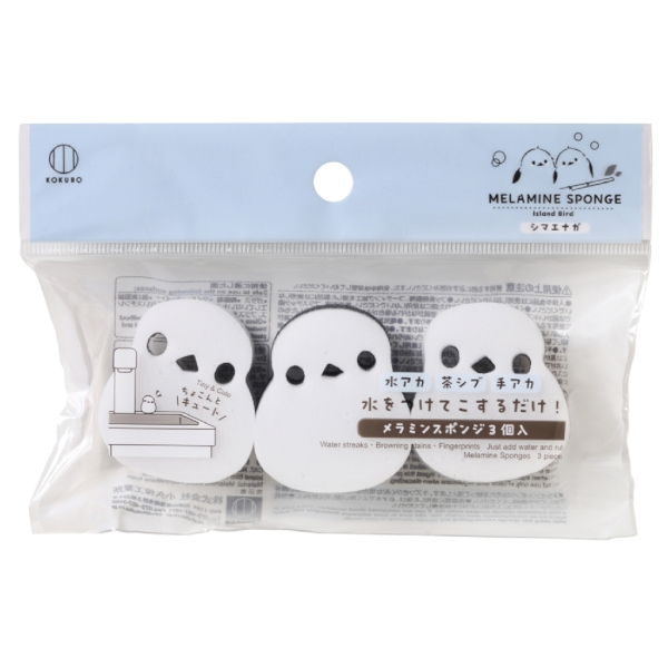 かわいくて人気の小鳥・シマエナガをモチーフにしたメラミンスポンジ。3個入。水をつけてこするだけ。