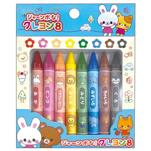 力かげんの調整がまだ難しい小さなお子様も、たのしくお絵かきができる油性クレヨンです。 色は赤・ピンク・うすだいだいいろ・黄色・緑・水色・茶色・黒の8色セットです。