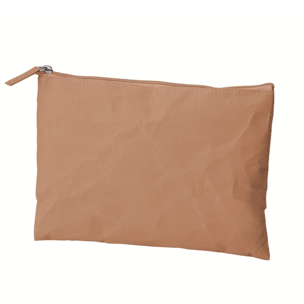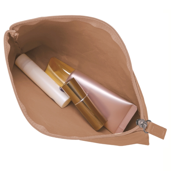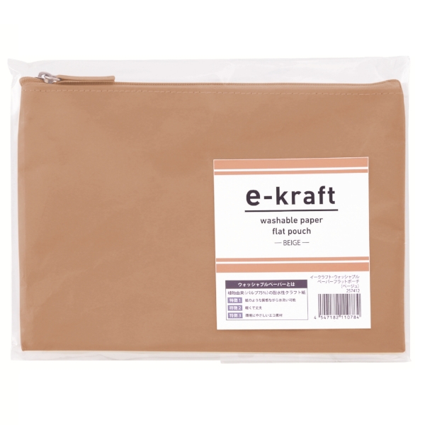 性別問わず使えるナチュラルカラーのシンプルポーチ。フラット型なのでバッグの中にもすっきり収まります。