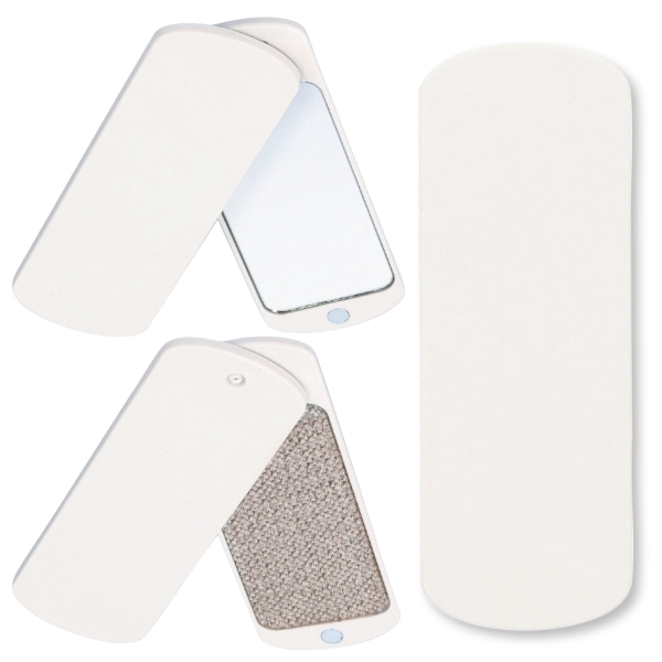 ポケットにすっぽり収まる薄型クリーナー。ミラー付きで、予定の直前にもサッと身だしなみチェック。